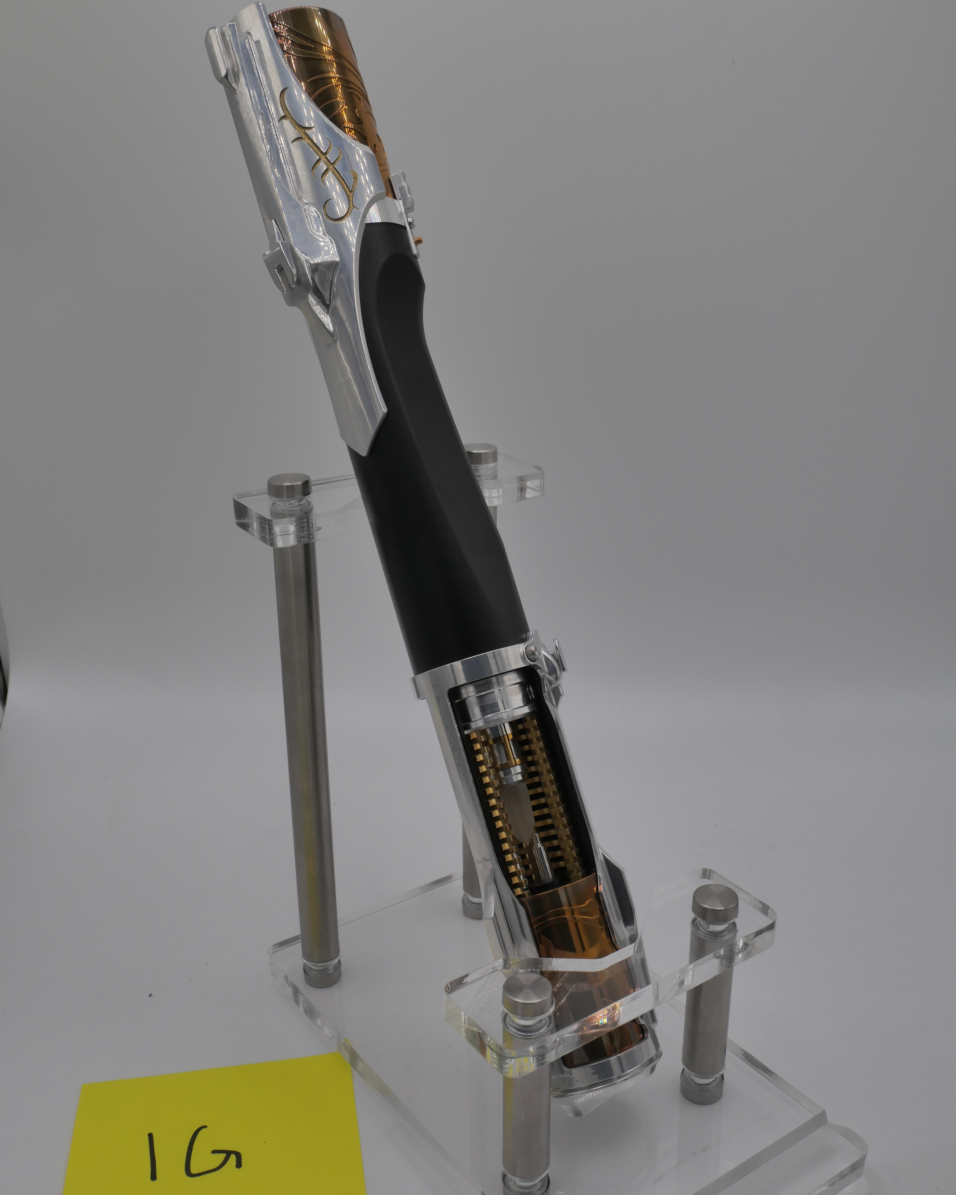 Non-installable verison of the Arcann V1 prototype - one of our first Arcann sabers, that may not be installable due to some missing internal parts, but still looks great on the outside and makes a wonderful display on a stand lightsaber.