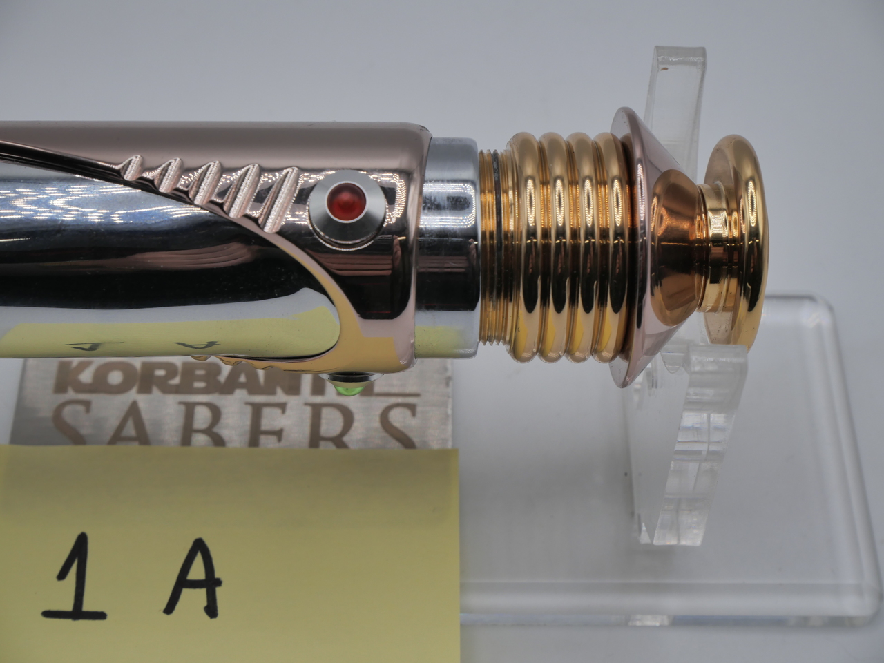 Emperor DS3 empty with Top blade side emitter is cross threaded on the hilt and is missing the alternate emitter of the static postion. This is perfect for displaying on a stand, but not for installing, very slight imperfections in the chrome, but still a great grade B product