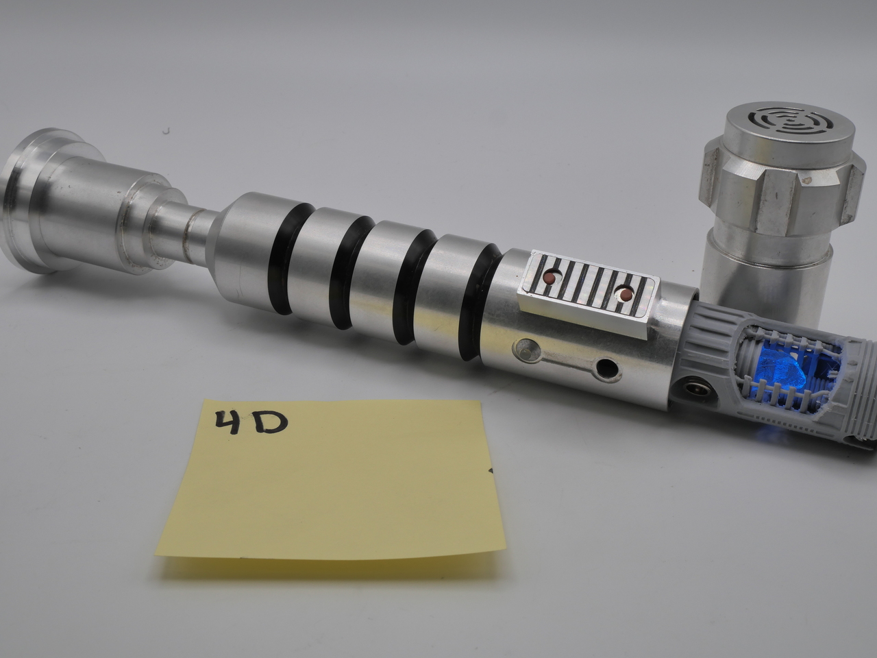 This is an installed older version of our Jacen saber. Will come with charger. In working condition is only missing a piece in the hilt leaving a hole. older Proffie board, still lights up, missing the led surrounds, so is imcomplete...still looks great as a light up product, NO BLADE is included, but takes a 1 inch diameter pixel blade.