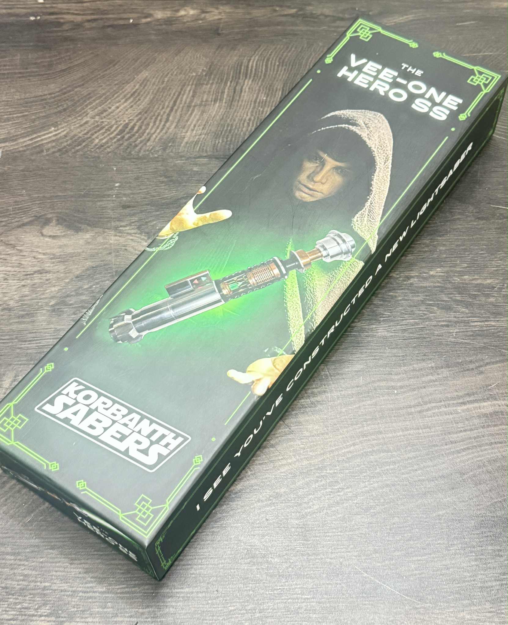 The 2025 VeeOne Luke Hero Saber with Crystal reveal chamber - STAINLESS Steel Version Limited run - Originally Designed by Shadowfoil Props for Korbanth Sabers.
